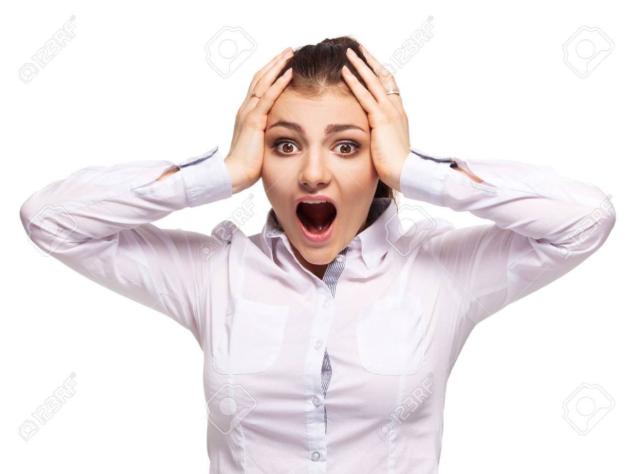 Woman At White Background Young Hysterics Female Isolated Stock Photo Picture And Royalty Free Image Image 55208864
