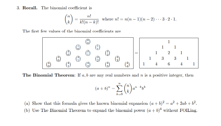 Solved 3 Recall The Binomial Coefficient Is N N K K N Chegg Com