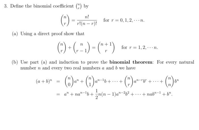 Solved 3 Define The Binomial Coefficient By N R N R Chegg Com